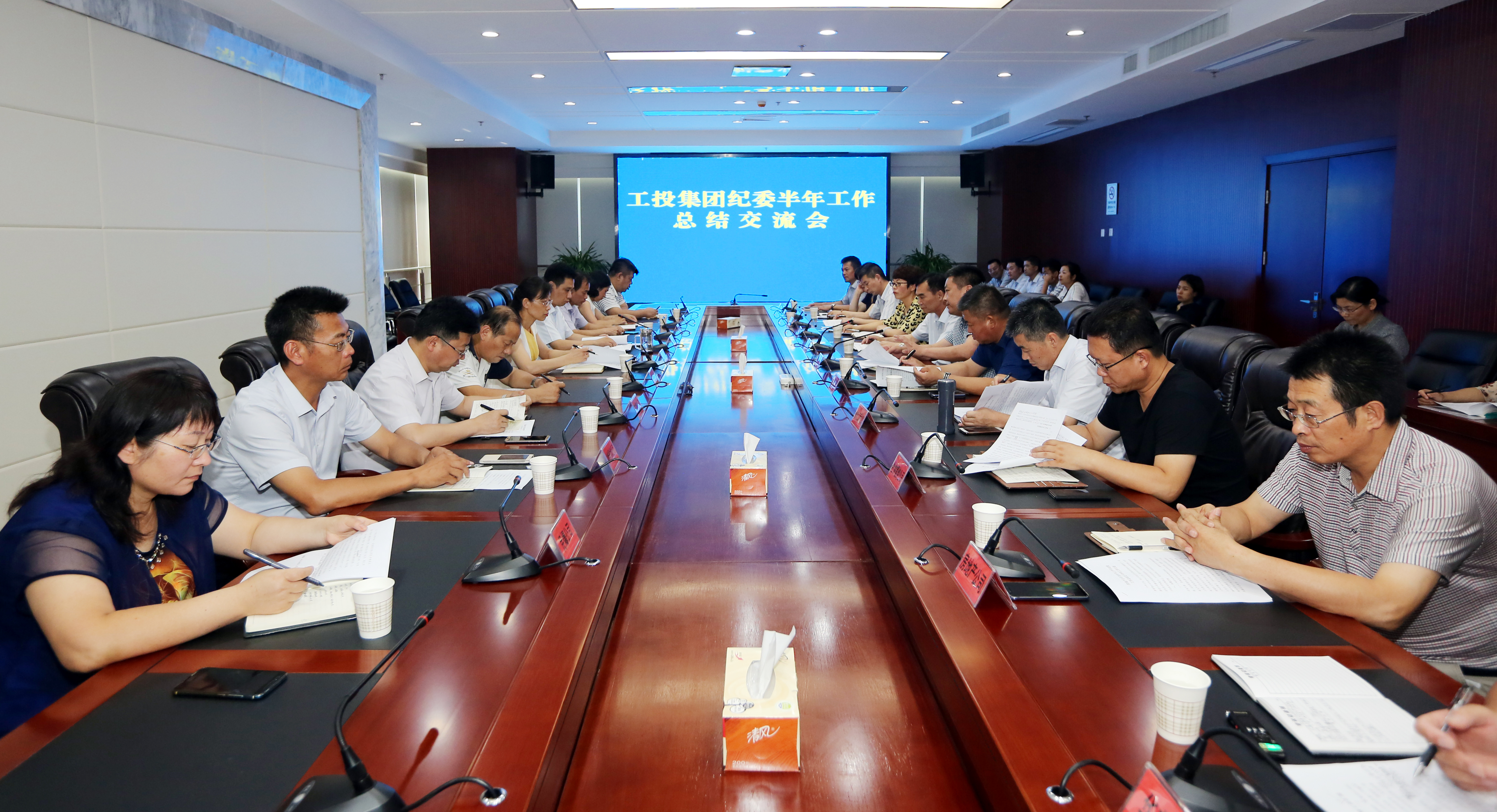7月19日下午,集團公司紀委召開上半年工作總結交流會。集團公司紀委書記汪群出席會議并講話。各權屬單位紀委書記(紀檢委員)、監察室主任參加會議。會議聽取了各單位上半年紀檢監察工作開展情況,分析了存在的問題,研究部署了下一步工作措施。