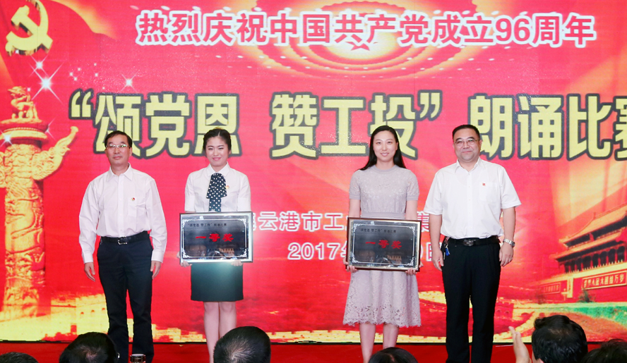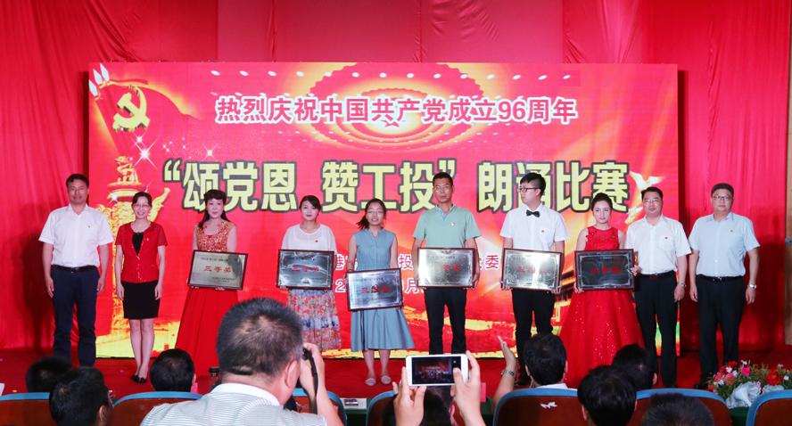 為慶祝中國共產黨成立96周年,緬懷黨的豐功偉績,629日下午,集團公司黨委在連云港職業技術學院文化藝術中心舉辦“頌黨恩·贊工投”朗誦比賽,集團公司領導楊龍、胡建明、張其海、王士華、戴鴻鳴、汪群、匡友本、陳如軍與來自集團公司各條戰線的近三百名代表歡聚一堂,共同慶祝黨的96歲華誕。
