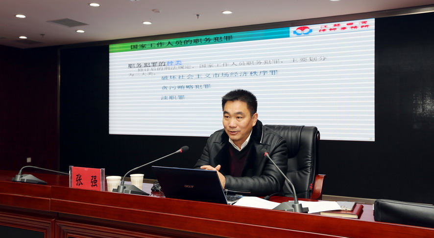 為進(jìn)一步幫助廣大干部職工筑牢思想道德防線,預(yù)防職務(wù)犯罪,1228日上午,集團(tuán)公司舉行廉潔履職警示教育專題報(bào)告會(huì),邀請(qǐng)江蘇田灣律師事務(wù)所副主任張強(qiáng)作廉潔履職專題報(bào)告。集團(tuán)公司領(lǐng)導(dǎo)班子成員,各單位領(lǐng)導(dǎo)班子成員、三級(jí)法人單位黨政負(fù)責(zé)人、集團(tuán)總部全體管理人員參加報(bào)告會(huì)。