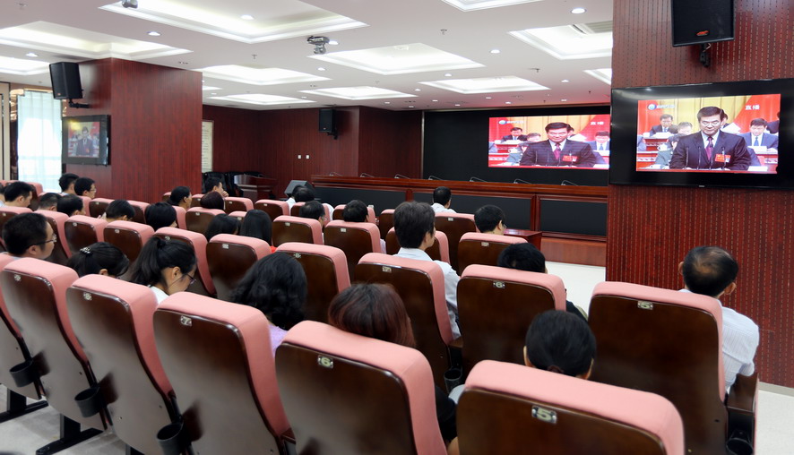 集團公司黨委委員張其海、王士華、戴鴻鳴、陳如軍等在集團總部收看了黨代會開幕盛況。
