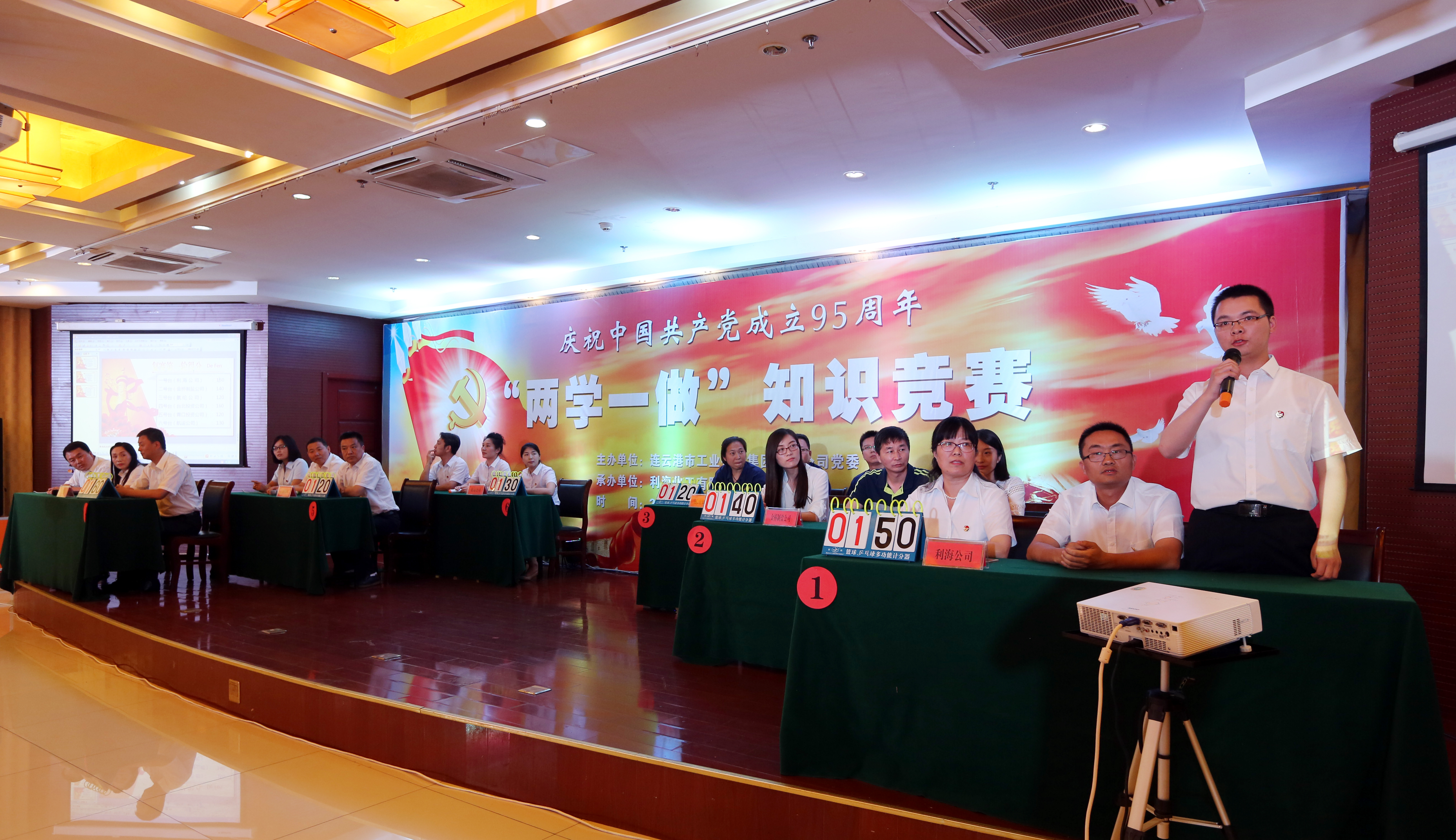 6月24日下午,由集團公司黨委主辦、利海化工公司黨總支承辦的紀念建黨95周年“兩學一做”學習教育知識競賽在臺南大酒店隆重舉行。集團公司領導楊龍、戴鴻鳴、匡友本、陳如軍,集團公司“兩學一做”學習教育領導小組及辦公室全體成員,總部各部門代表,各權屬單位黨組織主要負責人、分管黨建、紀檢工作副書記、黨群工作部、紀委負責人等觀看了知識競賽。