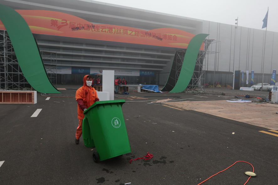 從10月29日以來,該公司啟動預案,統(tǒng)籌策劃,組織安排人員,調度機械設備,分解任務,明確責任時間節(jié)點,有效使用創(chuàng)衛(wèi)成果,轉投到“連博會”環(huán)境整治工作中來。300多名職工不顧連續(xù)5個多月創(chuàng)衛(wèi)奮戰(zhàn)的疲倦和勞累,以飽滿激情、高昂斗志,加班加點,奮戰(zhàn)在連博會環(huán)衛(wèi)整治工作“新戰(zhàn)場”。連日來,累計在展館周邊區(qū)域新植銀杏樹40余株、石楠樹30多株,更新草坪10000多平方米,美化環(huán)境,烘托氛圍。在展館廣場、附近干、支道路上,每天安排2臺大型洗掃車循環(huán)清掃沖洗和灑水降塵作業(yè),安排120多名環(huán)衛(wèi)人員撿拾動態(tài)垃圾、清理布展施工垃圾雜物,提升展館周邊區(qū)域的場地路面整潔衛(wèi)生養(yǎng)護等級。連云港火車東站廣場新增加30名環(huán)衛(wèi)人員,對廣場的路面、橋欄、果皮箱、花壇、座椅等進行多次清掃擦洗,撿拾清理清運垃圾,并將車站廣場環(huán)衛(wèi)保潔下班時間由晚8點延長到10點,通過細致優(yōu)質服務,強化窗口衛(wèi)生環(huán)境,愉悅參展商和來客的心情。
