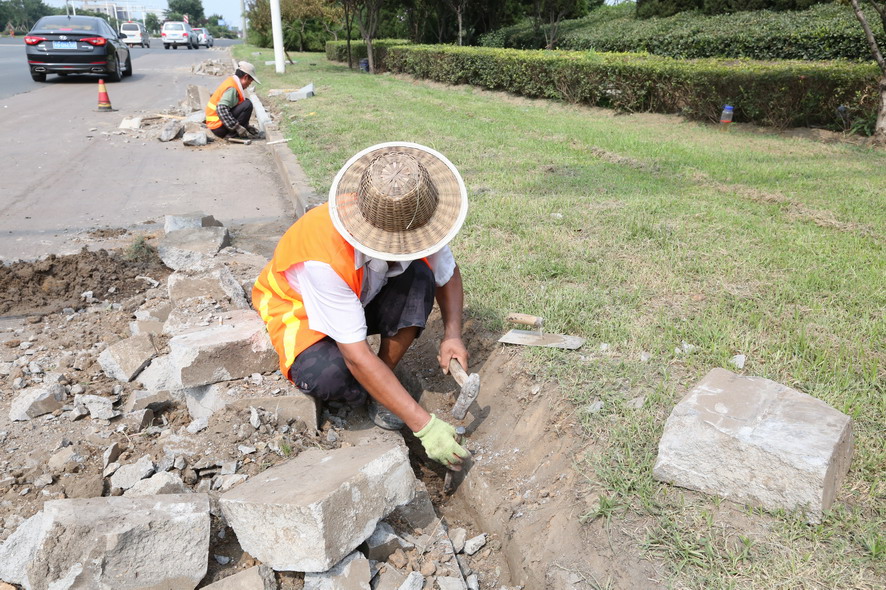 位于連云港東站附近的新光路,是開發(fā)區(qū)境內(nèi)的一條主要運(yùn)輸?shù)缆罚?jīng)常有重型卡車經(jīng)過,每天川流不息的車輛不僅給道路增加了運(yùn)載負(fù)荷,也使得道路兩旁的路牙石、人行道磚等受碾壓、撞擊、剮蹭等因素影響,破損非常嚴(yán)重。為了加快工程進(jìn)度,降低人工成本,工程項(xiàng)目部在該路段采取機(jī)械施工的方式,很大程度上的提高了項(xiàng)目進(jìn)度。在項(xiàng)目開展過程中,工程項(xiàng)目部的人員也遇到了許多的困難,新光路由于地處火車站附近,平常車流量大,在施工過程中要注意對(duì)來(lái)往車輛進(jìn)行避讓;另外,由于該路段臨近新光小區(qū)、瀾庭觀邸等住宅區(qū),早晚上下班的居民也限制了施工時(shí)間短。雖然面臨種種困難,盛達(dá)市政公司的施工人員沒有埋怨,而是想方設(shè)法去克服。自8月24日開工以來(lái),截止目前,總長(zhǎng)近6000米路段內(nèi)的路牙石以及人行道磚的清理工作已經(jīng)全部完成,下階段,工程項(xiàng)目部還將安排人員進(jìn)行新路牙石與人行道磚的更換工作,并將開展附近其他道路的修復(fù)工作,確保將“創(chuàng)衛(wèi)”工作的開展落實(shí)到實(shí)處。