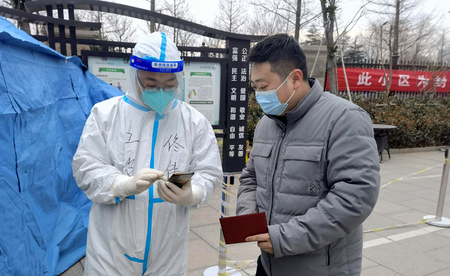 平時她只是居民小區里普通的一員,過著平凡的生活。但在這場沒有硝煙的抗“疫”之戰中,作為發展對象,她勇敢的站了出來,成為了疫情中的英勇戰士。她就是商務部員工王曦。在做核酸檢測信息采集時,王曦需要與醫護人員一樣,穿上厚重的防護服,裝備齊全,完善自身防護,然后對每位待檢人員進行手機掃描身份證登記。這項工作聽起來簡單,可干起來就不是那么容易了,注意力需要高度集中,掃描身份證后要進行信息核對,有缺失的信息需要補錄,戴著手套的手戳起小小的手機屏幕根本就不是那么利索,需要反復多次才能完成采集。為了避免上廁所耽誤工作,她忍住口干不喝水,保持掃碼姿勢基本不變,一天下來脫下防護服,里面的衣服早已被汗水濕透。當家人心疼的問她累不累的時候,她說:“我只是做了力所能及的事情,與其宅在家里,不如參加志愿服務,在這特殊時期盡自己的綿薄之力。”