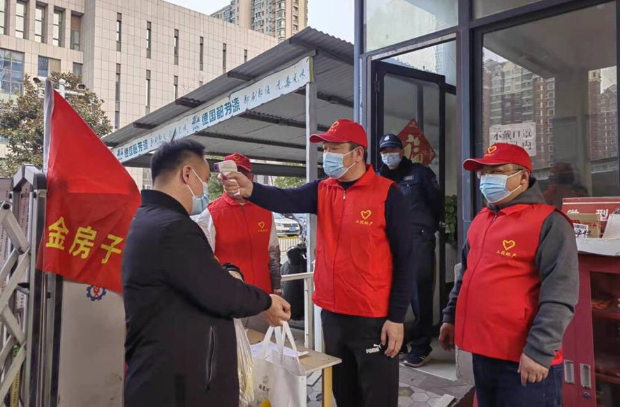亮出黨員身份,勇當戰“疫”榜樣。自本次疫情發生以來,公司廣大黨員積極響應《疫情防控志愿者服務招募令》,就近參加所在社區疫情防控志愿者服務工作,彰顯了“金房”黨員的擔當,用實際行動讓鮮紅的黨旗在疫情防控一線高高飄揚。志愿者在協助社區人員做好核酸檢測登記、清潔消毒、防疫宣傳的同時,還做好了防疫攻擊戰的后援穩控工作。該公司常務副總經理陳青山,所在小區為中風險防控區,實行封閉式管理,作為一名共產黨員,在做好個人防護的同時,主動參與到社區黨員志愿者服務隊中去,為小區居民當起了“蔬菜快遞員”,為大家送去了蔬菜、米面油等生活必需品。“小區沒有電梯,雖說有點累,但是當聽到隔離人家的開門第一句話:謝謝你,志愿者,辛苦了……,心里感覺暖暖的,所以做公益使人快樂!”陳青山帶著微笑這樣說道。在該公司,這樣的黨員志愿者還有很多,尚東現代城體溫檢測志愿者孫宏輝、海連新天小區核酸檢測志愿者王臻穎、猴嘴昌圩社區核酸檢測登記員王統安等等……他們以“逆行者”的姿態,展現出新時代金房黨員志愿者的風采。
