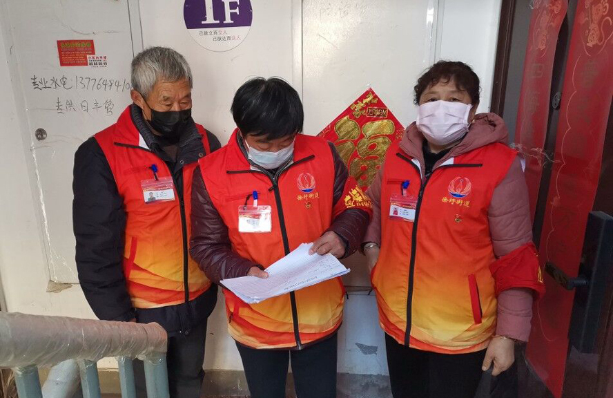 2月13日,幸福家園小區接到張圩社區街道求援,幫助挨家挨戶排查測體溫。穆道玲聽到這個消息立馬站出來了,她說:現在正是用人之際,我要求復崗。就這樣她又參加量體溫工作。她一個人負責四棟樓,從一樓到六樓,每天要跑多少遍,一戶都不能漏。在排查、測量體溫過程中有人還不愿意配合,她就耐心地做思想工作,這個活一忙又是一個星期。