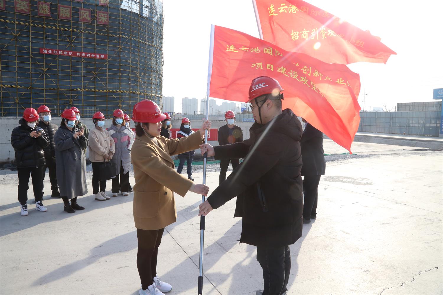 組織黨員干部赴自貿區連云港國際醫藥創新產業園一期、二期項目現場,親身感受園區招商引資和二期項目建設火熱的大干氛圍。在項目現場,機關黨支部書記向廣大黨員傳達學習市委書記馬士光在全市招商引資暨重點產業項目推進大會精神。隨后進行了項目建設攻堅小組和招商引資攻堅小組的授旗儀式。廣大黨員干部充分感受了公司招商引資和項目建設的強勁勢頭,觀摩學習結束后,還召開了專題交流座談會,部分黨員講心得、談體會,進一步總結運用觀摩學習成果。