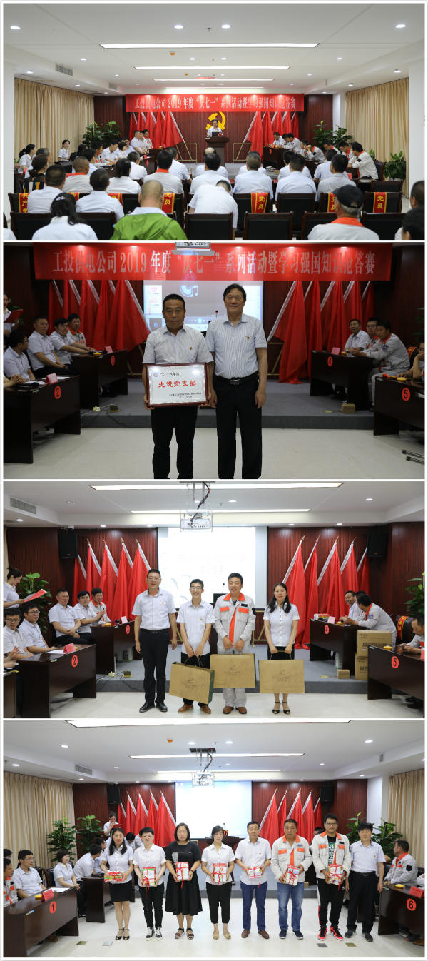 比賽期間,公司還為2018-2019年度先進黨支部、先進黨小組、優秀黨務工作、優秀共產黨員以及5、6月份《學習強國》支部月度積分冠軍進行了表彰 。(電宣)