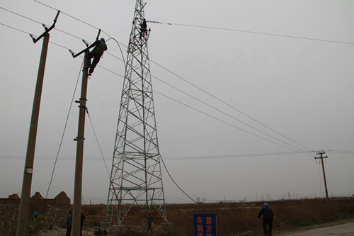 35KV東管線改造工程是我公司為解決徐南公司生產(chǎn)經(jīng)營(yíng)和居民生活用電緊張而實(shí)施的一項(xiàng)便民工程,技術(shù)要求高,施工難度大。為此,公司領(lǐng)導(dǎo)高度重視,從各供電所挑選精兵強(qiáng)將,組織了40余人的施工隊(duì)伍,公司副書記、副經(jīng)理盧明生、副經(jīng)理袁慶國(guó)親臨現(xiàn)場(chǎng),指導(dǎo)施工。經(jīng)過(guò)全體干群努力奮戰(zhàn),首次成功架設(shè)了35KV線路2.1公里,近30米高的角鋼電力鐵塔。(政工 朱兵)