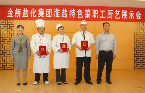 5月19日上午,金橋鹽化集團淮鹽特色菜職工廚藝展示會在淮鹽大酒店隆重舉辦。公司黨委副書記、紀委書記、工會主席盧明生致歡迎詞,集團公司工會副主席李嵐芹宣布比賽開始。來自集團公司各基層單位的13名技藝精湛的廚師做出了26道特色佳肴,經過評委會認真品評,臺南鹽場王樹偉、青口鹽場盧燕獲一等獎,其他選手分獲二、三等獎。(司宣)