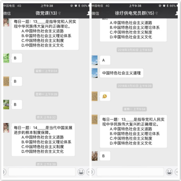 為促進(jìn)黨員更好的了解十九大精神,切實做到學(xué)懂弄通做實,公司黨委充分發(fā)揮微信網(wǎng)絡(luò)平臺靈活便捷、互動性強(qiáng)的優(yōu)勢,開展了“微考堂”“每日一題”學(xué)習(xí)活動。公司黨群工作部每日通過微信群出題,大家搶答。題目緊扣十九大會議精神、習(xí)總書記講話精神、新黨章等重點內(nèi)容,并定期組織黨員開展網(wǎng)絡(luò)答題考核,確保黨員真學(xué)真做。(電宣)