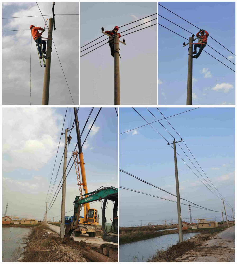 下午3時05分,青口供電所線路工王兜柱按照所里安排對轄區線路及設備進行安全巡視,發現新站線72號高壓桿傾斜嚴重,經過仔細勘察發現電桿根部已經斷裂,他立刻上報說明情況。故障就是命令,供電所立即安排副所長王建前往事故現場再次勘察,聯系機械、組織人員進行安全交底、具體分工準備材料,并以微信群、電話等方式,做好停電告知和解釋工作,緩解居民、養殖戶、育苗廠等用戶情緒。5時13分備用電桿運送到位,按照規程要求停電、驗電、掛接地,拆除段桿立新桿、重新緊導線,經過1個多小時的通力協作搶修,6點22分新站線500余戶居民,近萬畝池塘,一座揚水站等用戶,全部恢復正常供電。