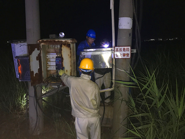 臺南供電所員工夜間搶修電力故障