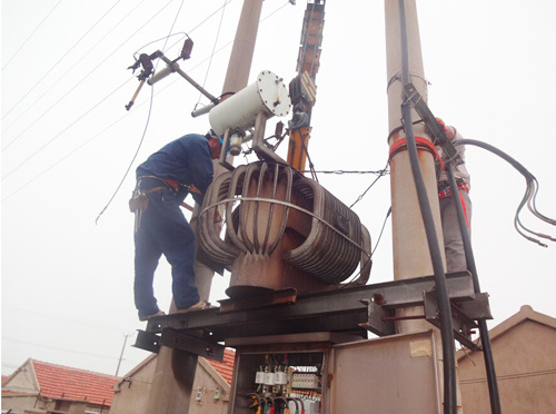 連日來,天氣持續(xù)高溫,用電負(fù)荷也隨之加大,轄區(qū)原有設(shè)計(jì)的供電線路及變壓器容量已不能滿足居民生活用電的需求,供用電矛盾日益突出。特別是4號(hào)變壓器供電區(qū)域大、容量小,已嚴(yán)重危急到供電質(zhì)量和供電安全運(yùn)行。為此,所領(lǐng)導(dǎo)決定將原有的160KVA變壓器更換為250KVA變壓器。為了避開高溫時(shí)斷,大家起早作業(yè),但還是忙的汗流浹背。他們顧不上休息,加快設(shè)備更換速度,終于在上午八點(diǎn)前完成更換任務(wù),恢復(fù)供電。(王志勇)