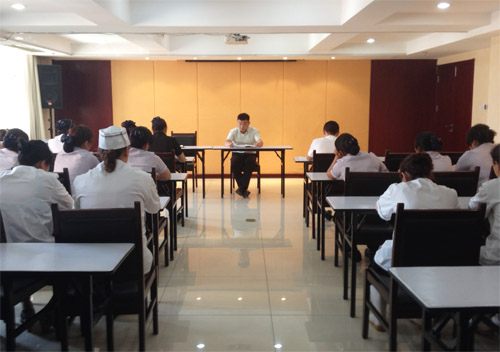 在培訓中,陳總監結合諸多事故案例,強調了預防食物中毒的重要性,讓參加培訓的員工了解什么是食物中毒、容易引起食物中毒的食材主要有哪些、怎樣識別和防止食材霉腐變質。餐飲部經理郭天麗重點講解了食物中毒的幾種特征及一般急救方法。