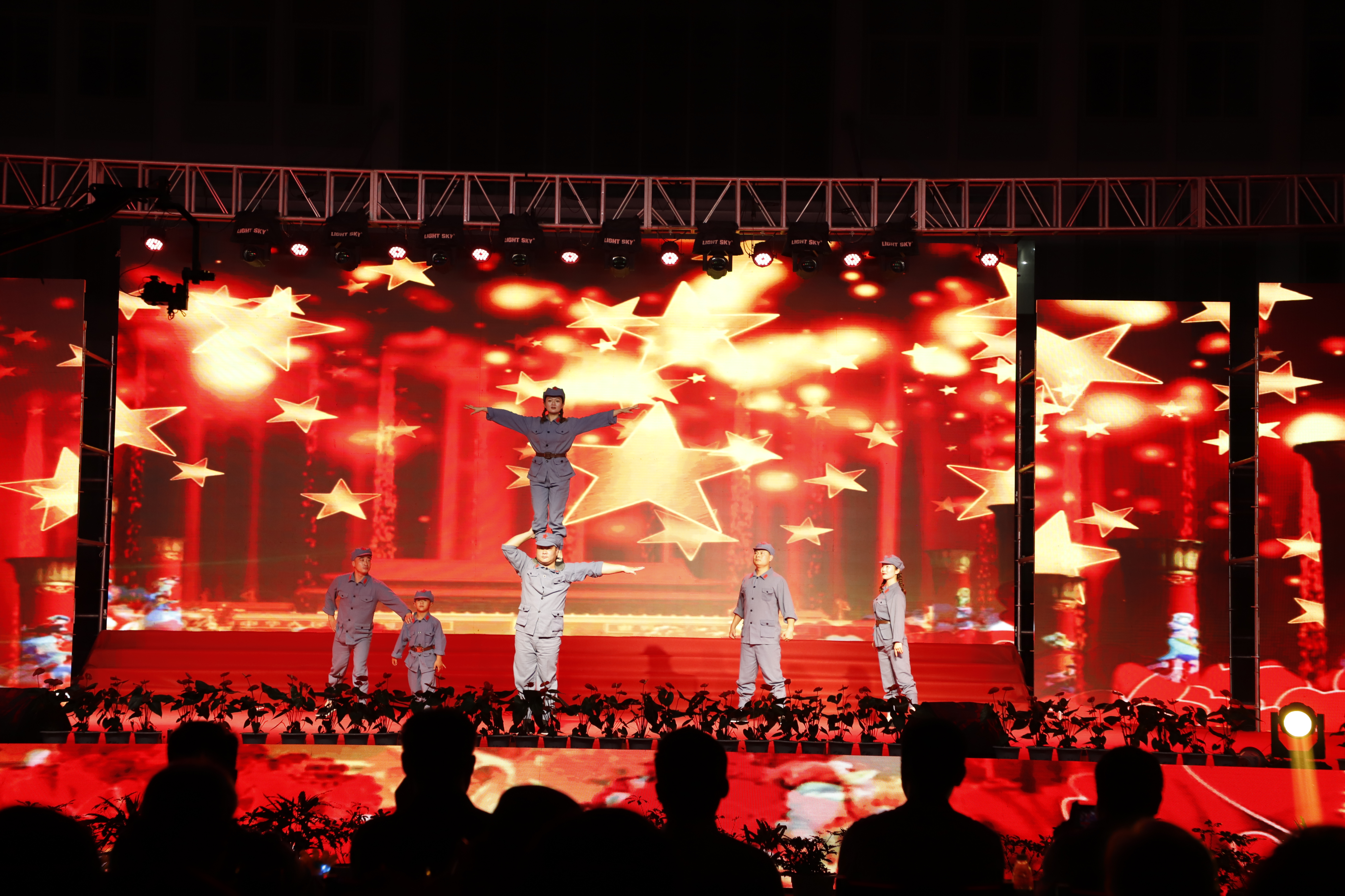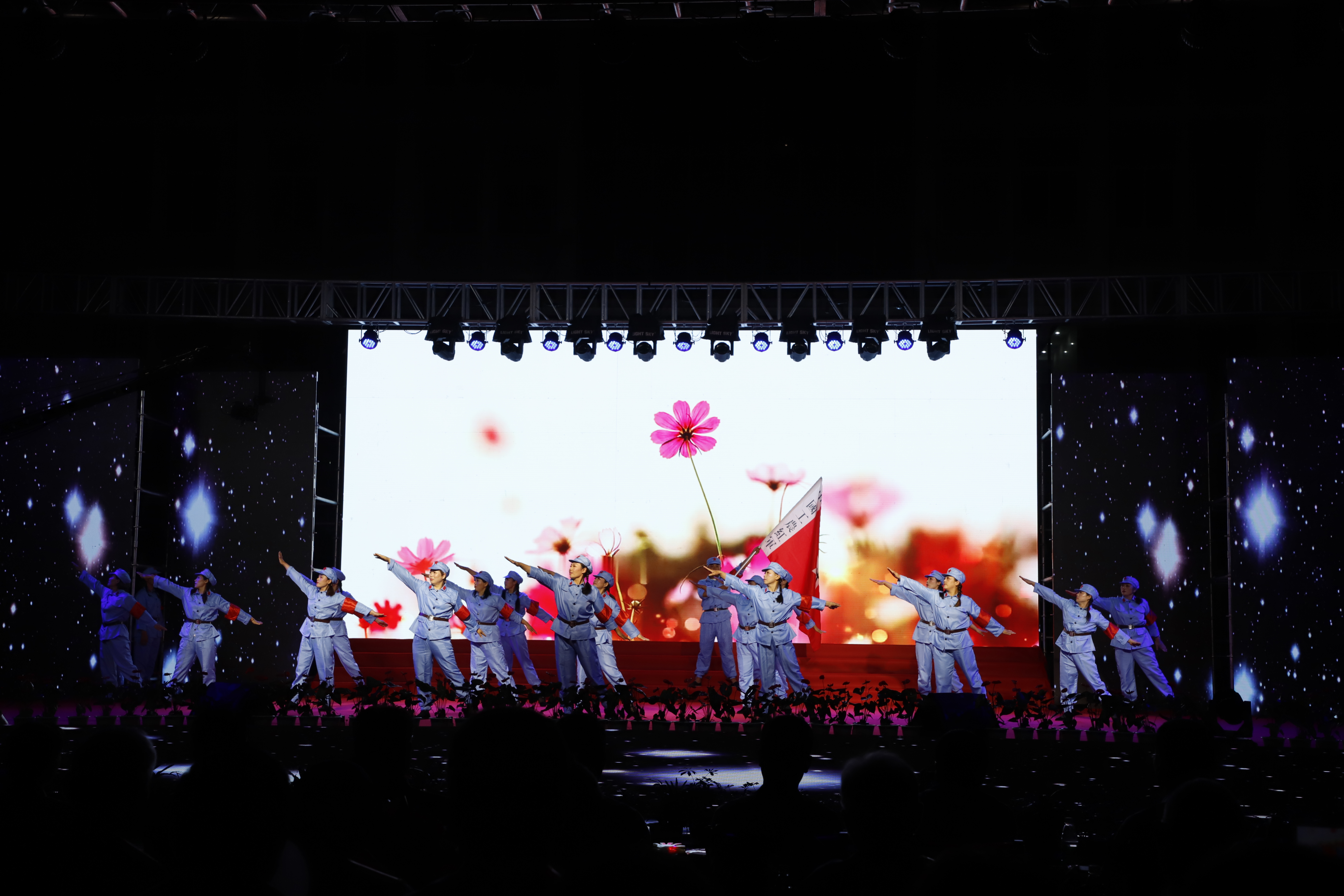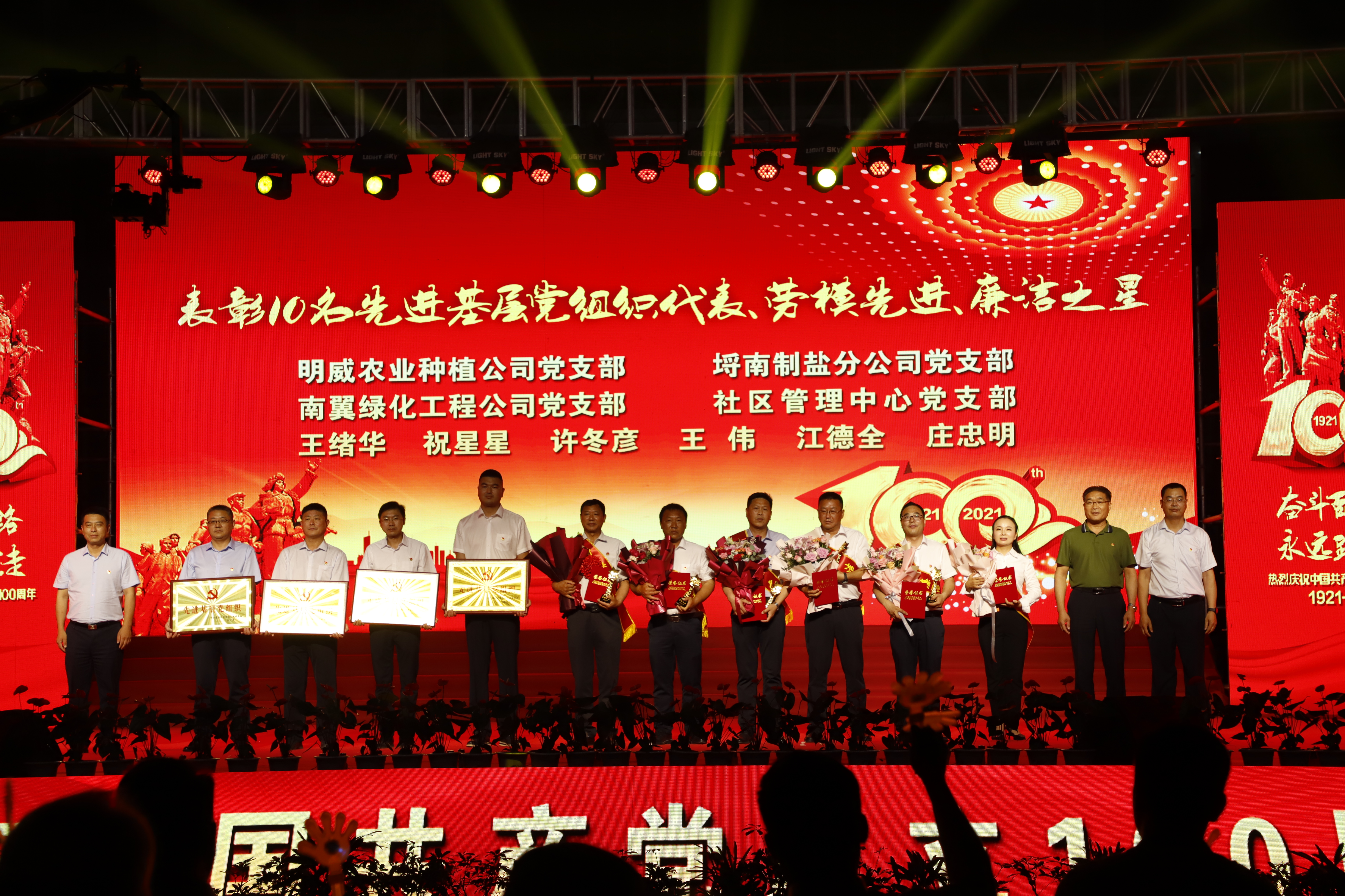 百年征程路漫漫,燦爛輝煌激人心,是中國(guó)共產(chǎn)黨指給了人民解放的道路,領(lǐng)導(dǎo)中國(guó)走向光明,是中國(guó)共產(chǎn)黨引領(lǐng)中華民族走向復(fù)興之路,奮進(jìn)新時(shí)代、開(kāi)啟新征程,最后,全場(chǎng)人員同唱《沒(méi)有共產(chǎn)黨就沒(méi)有新中國(guó)》,10面國(guó)旗、10面黨旗在揮舞,整個(gè)舞臺(tái)成為一片紅的海洋,整場(chǎng)晚會(huì)圓滿落下帷幕。