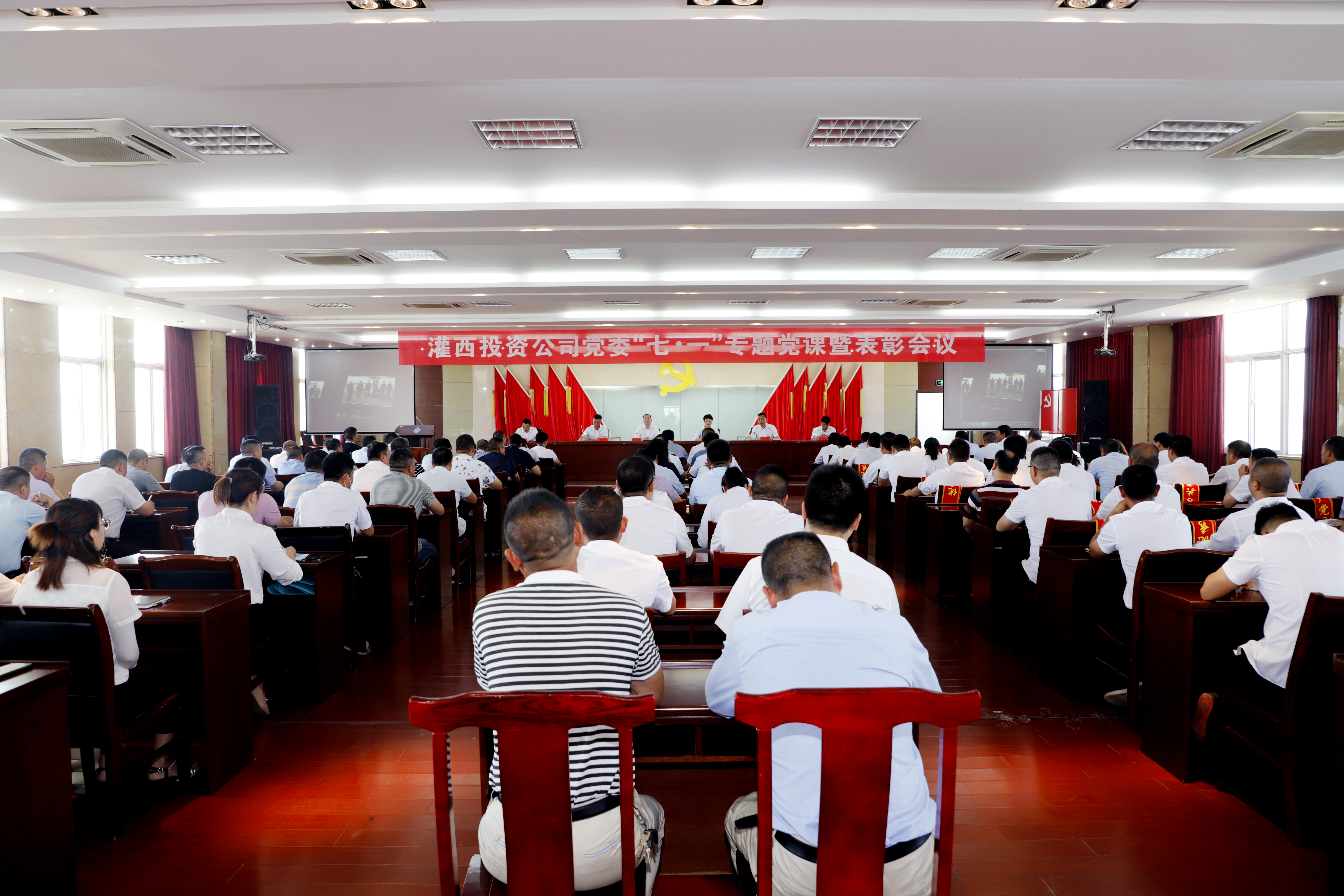 7月1日,灌西投資公司慶祝建黨99周年“七一”專題黨課暨表彰大會在機關五樓會議室隆重舉行,重溫黨的光輝歷程,總結工作,表彰先進,進一步動員公司各級黨組織和全體黨員,不忘初心,牢記使命,鼓足干勁,加油奮進,共同建設美麗幸福新灌西而努力奮斗。