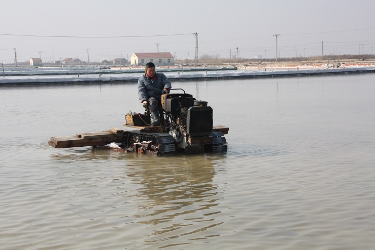 日前,筆者在走訪日曬制鹽公司時看到,在埒南制鹽分公司七班的鹽池內(nèi),一臺“唐三零”扒鹽機正在進行扒鹽工作,池埝上機泵運作時的轟鳴聲回蕩在鹽灘上,標(biāo)志著日曬制鹽公司今年的春扒戰(zhàn)役正式打響。