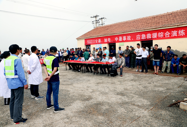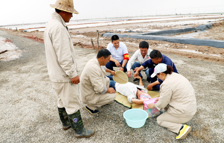 此次演練過程中,安全監(jiān)管部李長軍主持了這次演練活動,埒南制鹽分公司職工及管理人員參與其中,演練模擬現(xiàn)場有三個:1、職工在灘頭塑池堰上突然中暑(重度)。2、職工在廩基小鹽化鹵調(diào)鹵中接觸老化線路接頭時不慎觸電(傷害較重)。3、職工在上班途中三輛電瓶車相撞(跌傷較重)。在救援過程中,大家各司其職,齊心協(xié)力,配合默契,有條不紊成功完成了此次演練活動。通過這次應(yīng)急演練,進(jìn)一步提高了公司員工應(yīng)對緊急事件的自我保護(hù)和防衛(wèi)能力,保證員工在發(fā)生突發(fā)事件時,能熟練應(yīng)對、有序救援,最大限度地減少事故帶來的損害,切實保護(hù)員工的安全。