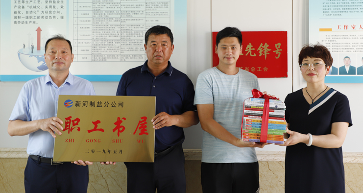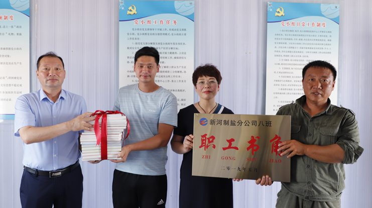 為鼓勵和支持員工不斷更新知識,激發員工自我學習的能力,提升班組核心競爭力,7月2日上午,灌西公司黨委書記、董事長、總經理李國文,黨委副書記、紀委書記、工會主席王宏為日曬制鹽班組贈送圖書并授牌。