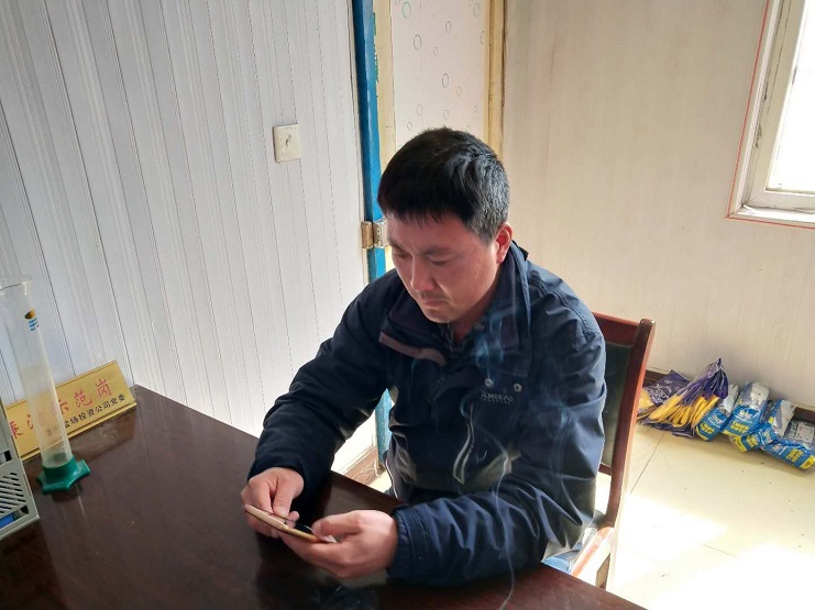 圖為:埒南制鹽分公司副經理耿劉利用午休在學習,耿劉同志學習積分已達3000分。