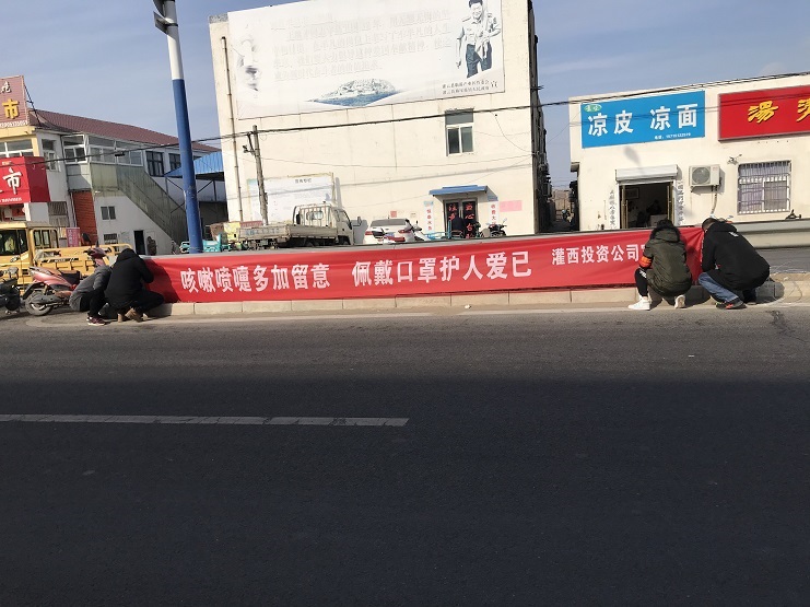截止1月28日,通過懸掛橫幅和張貼各類標(biāo)語共1300張,基本實現(xiàn)了灌西疫情防控宣傳全覆蓋。(蘇北)