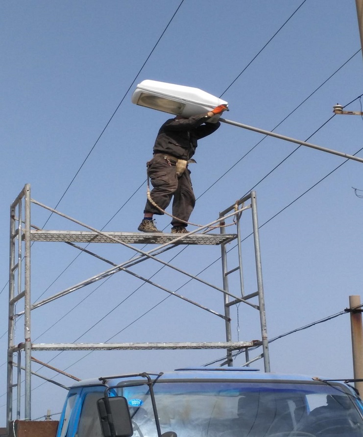 機電服務公司認真做好日曬鹽道路路燈修理工作