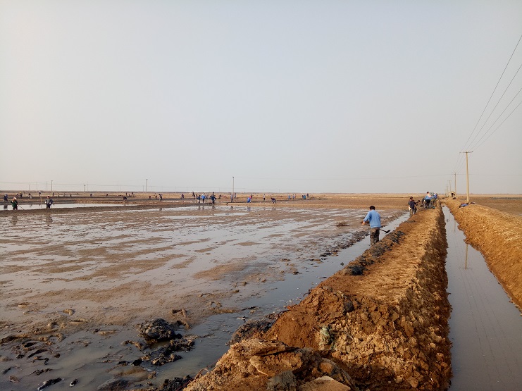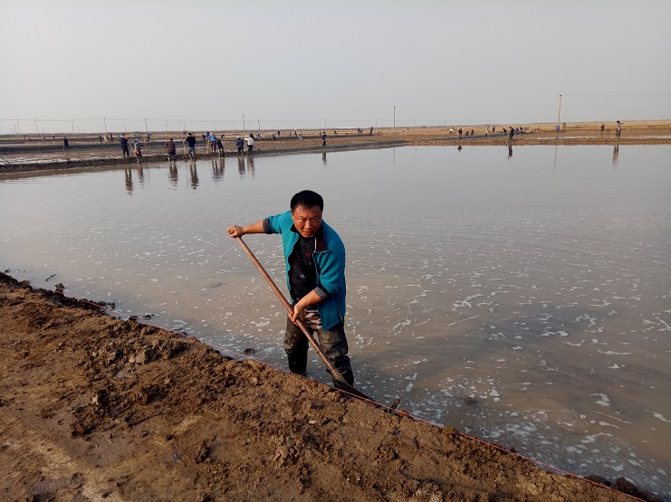 近日,實業公司制鹽分公司海鹽基地,一班班組灘場改造呈現出一片繁忙的景象。日曬制鹽新河制鹽分公司、埒南制鹽分公司等兄弟單位近兩日,輪流調動數百余人參加實業公司海鹽基地撈溝做埝大會戰。現場場面十分壯觀,大家干得熱火朝天:有挖泥澆水的、踩泥打堰的、抹埝找平的......員工們齊心協力地打好這次攻堅戰。本次共計撈溝做埝近四千米。實業公司全體員工對兩公司的辛勤勞動給予了贊許和由衷的感謝。(史祥燕)
