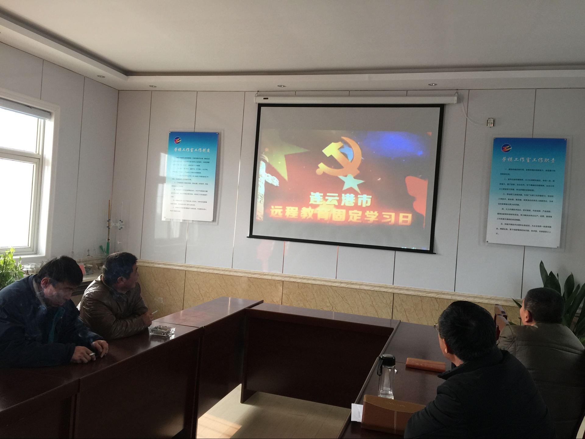 1月18日,新河制鹽分公司黨員、入黨積極分子在勞模創(chuàng)新工作室觀看愛國主義電影《空天獵》。