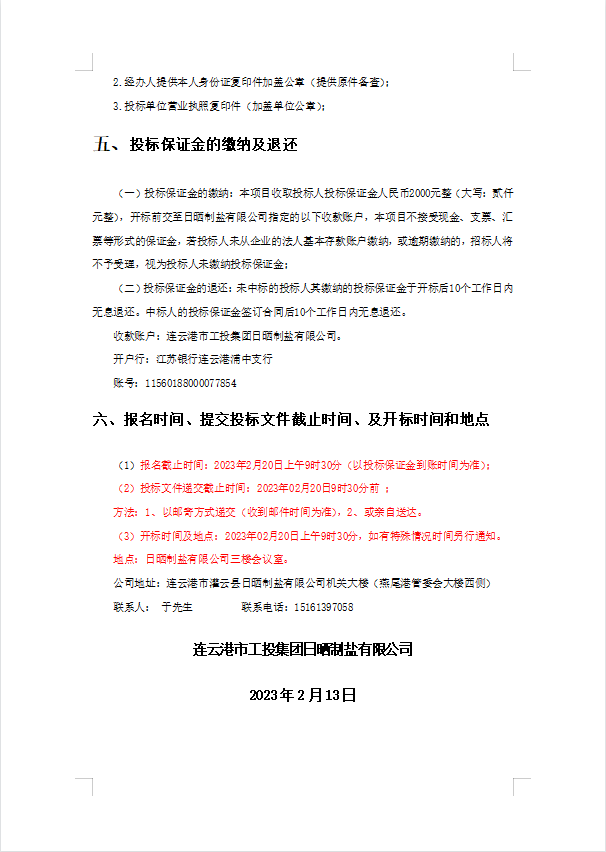 連云港市工投集團日曬制鹽有限公司履帶活碴機配件采購項目招標公告