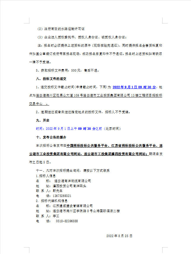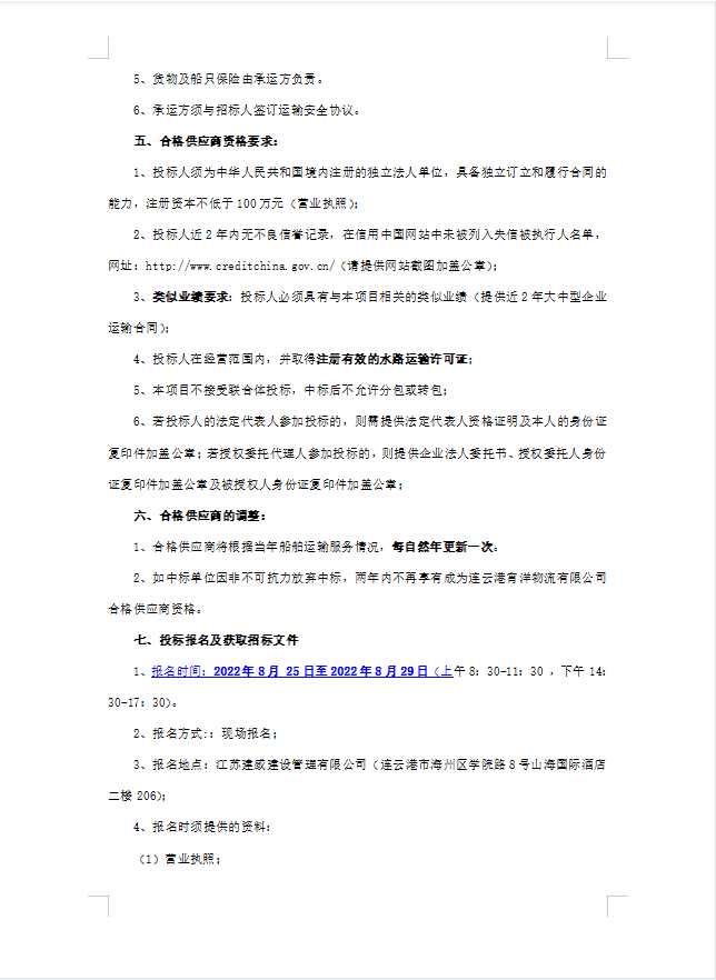 連云港宵洋物流有限公司船舶運(yùn)輸服務(wù)業(yè)務(wù)招聘合格供應(yīng)商招標(biāo)(二次公告)