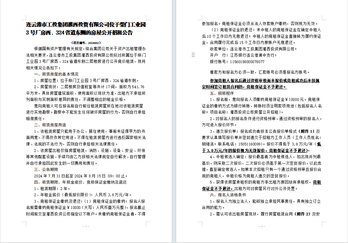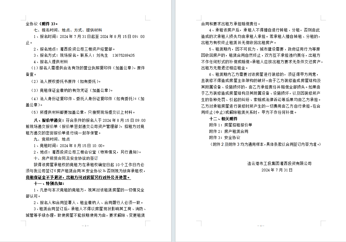 附件1:房屋招租報(bào)價(jià)單