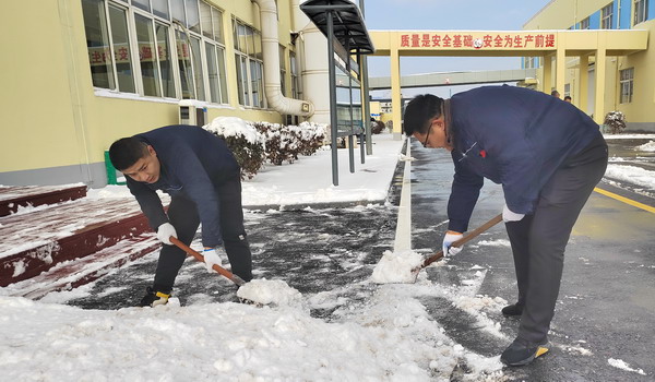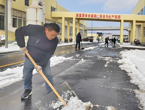 在公司領導的帶領下,大家帶帚、不畏嚴寒、士氣高漲,在確保自身安全的情況下,一起清除廠區內及周邊區域道路的積雪積冰。在掃雪除冰過程中,公司男同事們揮動鐵鍬奮力鏟除路面積雪積冰,女同事也參與其中干勁十足,忙碌的身影構成了一道亮麗的風景線。雖然室外溫度很低,但大家勞動的熱情和團結的力量讓這個瞬間變得格外溫暖。