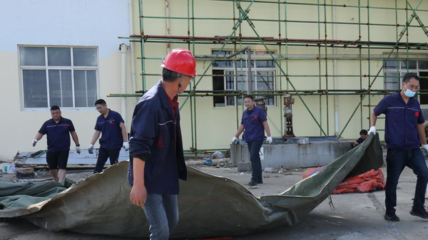 期間,共整理氈蓋塑(帆)布1000余平方、清潔廠區地面近500平方、清潔室內墻面70余平方。(金宣)