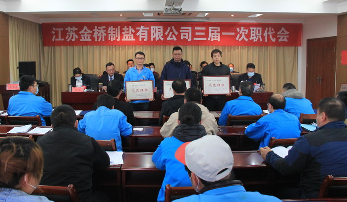 大會簽訂了《2021年度集體合同》、《2021年度經(jīng)營認(rèn)標(biāo)責(zé)任書》,與會代表認(rèn)真審議通過了總經(jīng)理工作報告,通過了大會決議、有關(guān)方案和意見。加工鹽車間、包裝鹽車間、銷售部依次作了表態(tài)發(fā)言。大會表彰了第九屆“金橋杯”勞動競賽、2020年“大干四季度”勞動競賽的先進(jìn)集體和先進(jìn)個人以及2020年度“金橋工匠”。(金宣)