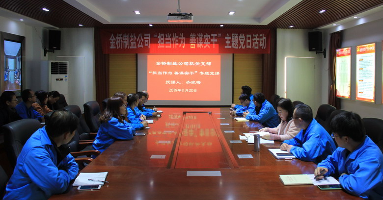 活動中,機關支部書記齊欣梅帶領黨員學習了《中國共產黨第十九屆中央委員會第四次全體會議公報》,為全體黨員上了題為《始終做到敢于擔當》的黨課,共同學習了連云港堿業有限公司職工田恒余的先進事跡,并觀看了黨員固定學習日視頻《烈火英雄》。(金宣)
