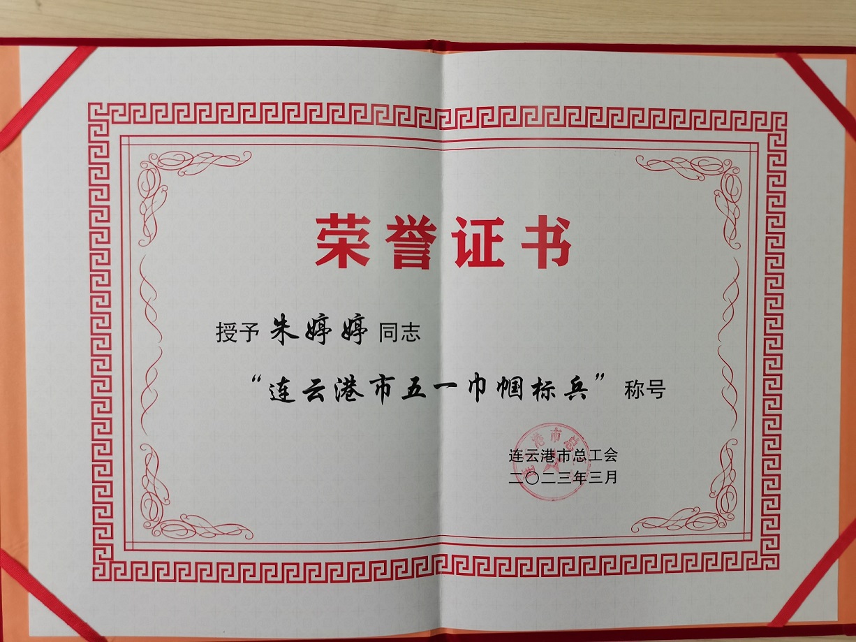 五一勞動節來臨之際,連云港市總工會下發獎勵通知,授予格斯達擔保公司風險部副經理朱婷婷“五一巾幗標兵”稱號!