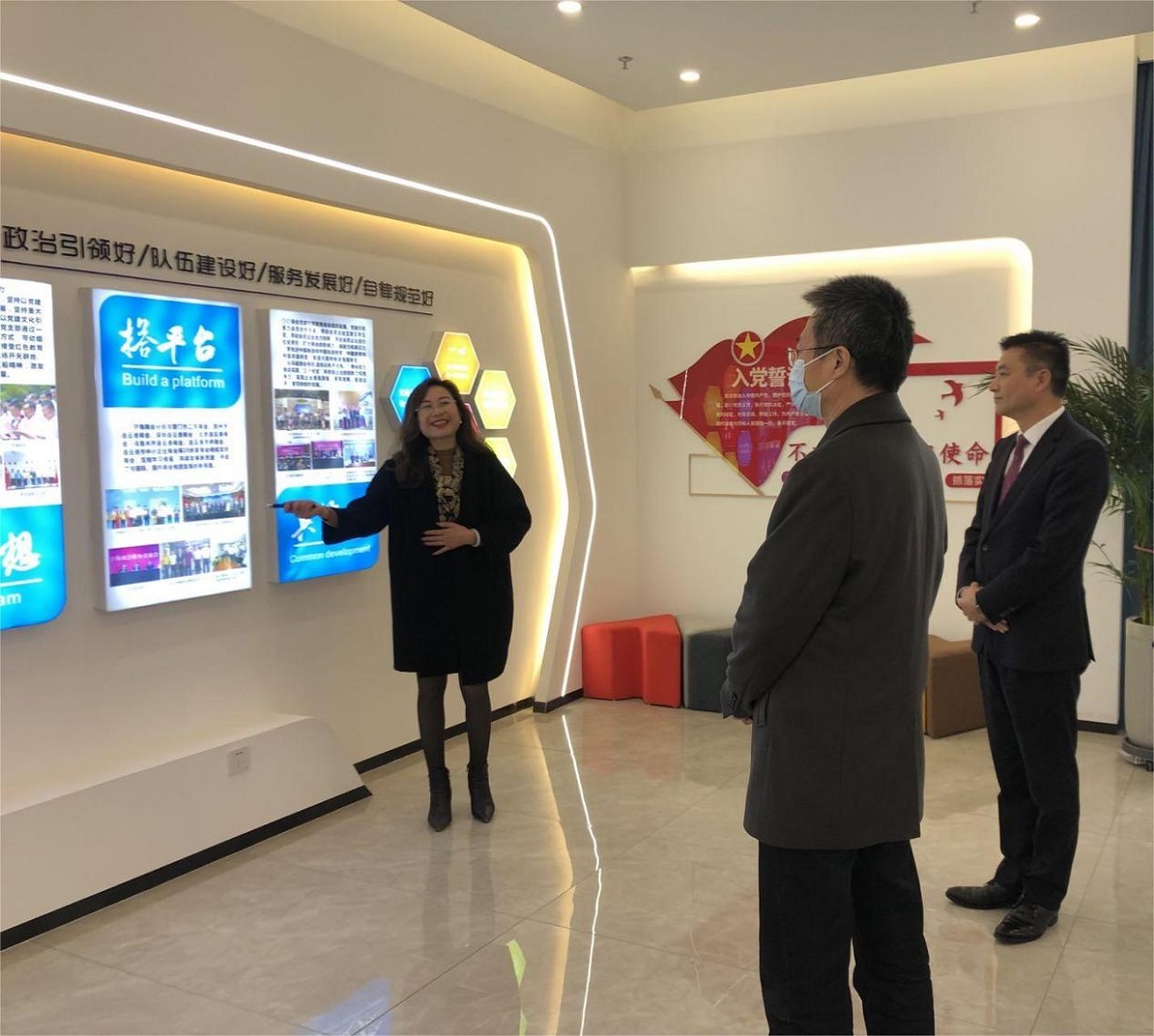 會上,徐兵董事長聽取了商會會長陳愛明及會員企業的簡單介紹,并實地參觀了商會的駐地企業、黨建活動室,充分了解商會企業的發展困境及融資訴求。