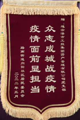 非常感謝你們對我們社區(qū)的守護(hù),為我們居民筑牢了疫情‘防護(hù)墻’,你們辛苦了!”5月16日下午,路南街道向陽社區(qū)居委會書記王婷一行,專程來到資產(chǎn)公司送來一面印有“眾志成城戰(zhàn)疫情,疫情面前顯擔(dān)當(dāng)”的錦旗,代表社區(qū)居民向資產(chǎn)公司黨支部今年疫情期間援助向陽社區(qū)中所作貢獻(xiàn)表示敬意和感謝。