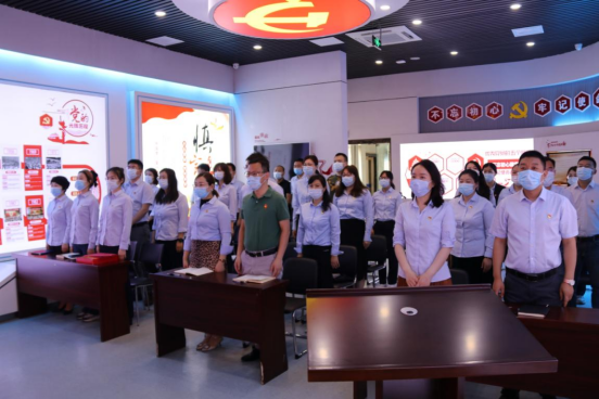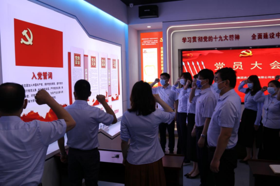 新老黨員一起面向鮮紅的黨旗,重溫入黨誓詞。莊嚴隆重的氛圍,鏗鏘有力的誓言,使全體黨員更加堅定了為黨和人民事業奮斗終生的決心