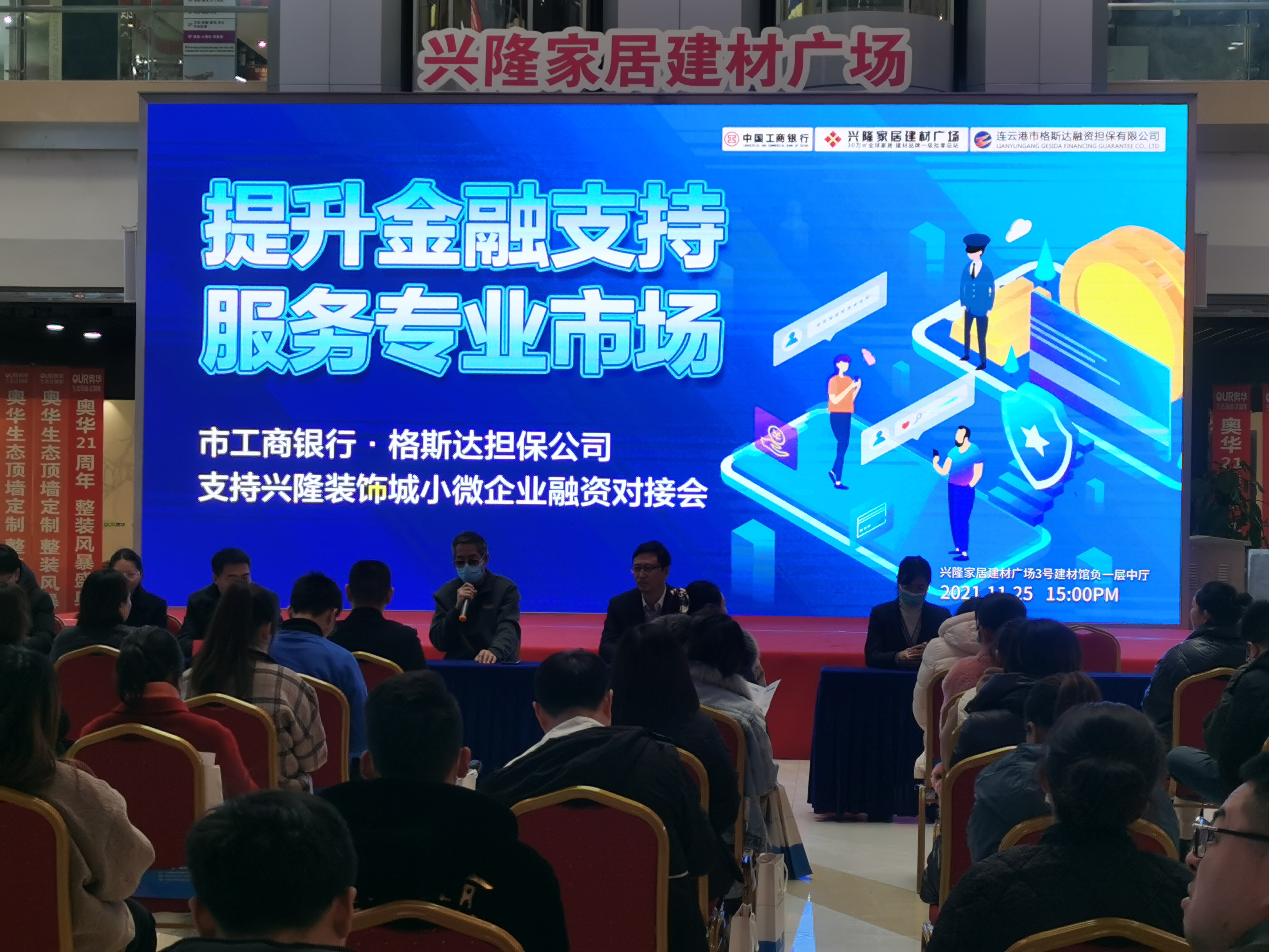 11月25日下午,格斯達公司聯(lián)合市工商銀行在興隆裝飾城舉辦了主題為“提升金融支持,服務(wù)專業(yè)市場”的小微企業(yè)對接會活動,深入貫徹落實黨中央、國務(wù)院關(guān)于改進小微企業(yè)等實體經(jīng)濟金融服務(wù)的部署要求。本次活動為興隆裝飾城的商戶提供了一個了解國家政策與我公司金融服務(wù)產(chǎn)品的平臺,通過現(xiàn)場講解、宣導(dǎo)與交流,深化銀企關(guān)系,為興隆裝飾城的小微企業(yè)融資發(fā)展提供良好的金融環(huán)境。