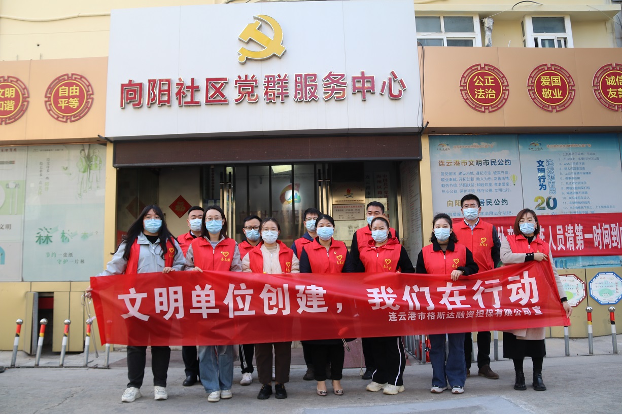 發揚志愿者精神,響應海州區文明辦開展創建全國文明城市文明單位創建我們在行動活動,114日,金融板塊組織17名黨員、積極分子、青年員工參加向陽社區志愿服務活動。
