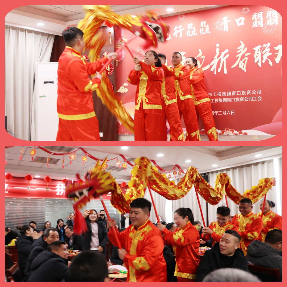龍騰四海展宏圖,年輪輝煌展未來(lái)。2月6日下午,“龍行龘龘 青口朤朤”2024年迎新春聯(lián)歡會(huì)在泰祥三樓會(huì)議室舉行。公司領(lǐng)導(dǎo)班子及各單位、各部門(mén)干部職工80余人歡聚一堂,共賀新春,共話(huà)新篇。