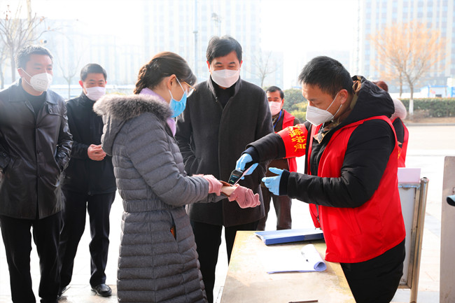 汪書記一行在公司疫情防控檢查站前,詳細了解了公司疫情防控情況,青農一路作為主要的進場通道,四個單位的黨員干部輪流值班,并設置臨時看護房,保證二十四小時值班。在鹽場家園小區僅保留一個出口,外來家用轎車一律禁止入內,每戶發一張通行證,嚴格管控人員流動。汪書記得知物業公司還沒有完成,鼓勵大家非常時期用非常辦法,將工作做細做實,想居民所想,嚴格做好防控工作。進入小區前,汪書記也與居民一樣配合登記和測量體溫,當看物業為了保證每天定時對單元和電梯間等重要場所的消毒存有大量消毒液,強調物業公司要增強消毒物品存放安全意識,合理使用,盡最大努力保一方平安。 (顧 益)