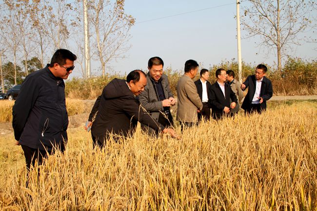 11月1日下午,青口投資公司大新農場一分場的稻田一片金黃,沉甸甸的稻穗彎腰相迎,開鐮的第一天集團公司總經理胡建明就來到這里調研指導工作。在家領導班子成員全程陪同。