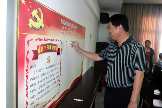 ? ? ??8月28日下午,一場別開生面的“青紀杯”廉政知識競賽在青口公司舉行。公司領導班子親臨現場為選手們加油鼓勁,各部室負責人及來自公司各單位、部門的60余名職工到場觀看了整場比賽。賽前,由黨委書記胡傳法帶頭,全體在崗黨員在廉政誓詞上進行簽名。