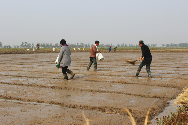 早在4月份,深入田間,就可見緊鑼密鼓的落谷育秧場景。明威公司4月15日完成秧田開溝、打埂、整平,17日開始浸種工作,并同步對秧田進行上水洗鹽排堿及上水整平;4月22日正式實施秧田落谷工作,截止26日,全面完成自種2485畝秧田落谷工作。