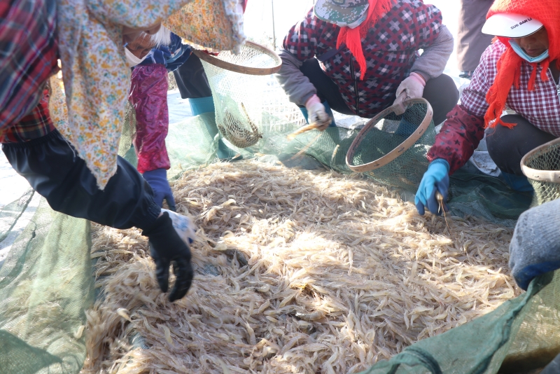 近日,三洋分場養殖區脊尾白蝦陸續起捕出售。據了解,脊尾白蝦畝產約60-120斤,比去年同期產量略高,均價在15-26元。(三洋分場)