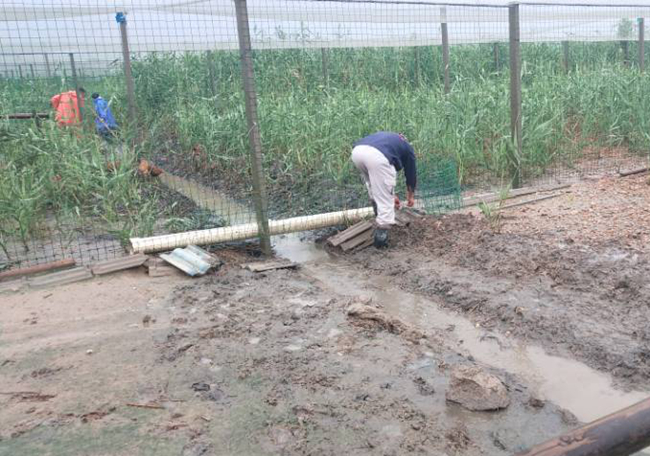 近期雨水較多,種養(yǎng)中心利用雨水天氣,配合施工單位避開高溫進行排水道清理。將原排水河道清淤治理,并對排水河道采取鐵絲網(wǎng)加固加牢的措施,確保雨水期間雞舍排水系統(tǒng)暢通。(田鐘超)