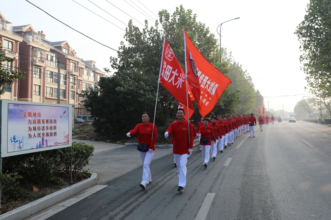 10月20日清晨,米業(yè)營(yíng)銷公司聯(lián)合海州區(qū)微馬隊(duì)共同開展健步走活動(dòng),吸引了共三百余名健身愛好者參與其中。本次活動(dòng)旨在進(jìn)一步宣傳提高“鹽田玉”品牌的知名度,讓廣大市民在積極運(yùn)動(dòng)的過程中認(rèn)識(shí)“鹽田玉”、了解“鹽田玉”,拓寬“鹽田玉”宣傳渠道,提倡積極健康的生活方式,倡導(dǎo)廣大市民吃優(yōu)質(zhì)大米,過健康生活。本次健步走海州區(qū)石棚山景區(qū)廣場(chǎng)出發(fā),內(nèi)環(huán)朐陽門、海州古城、秦東門大街返回,全程3.6公里。?(顧?益)